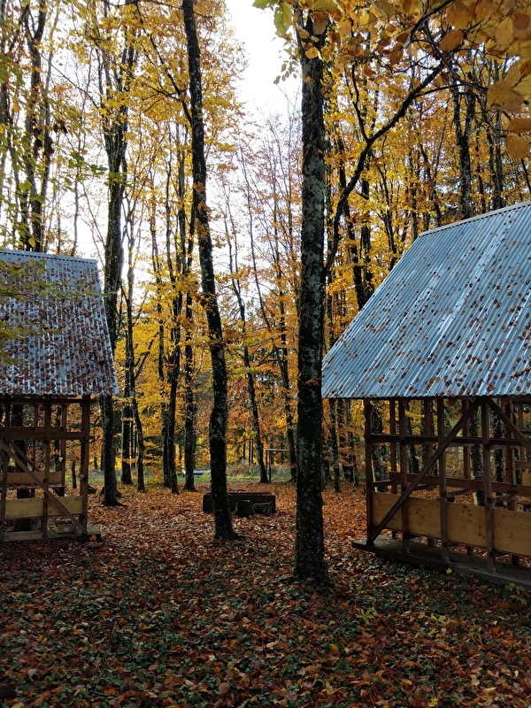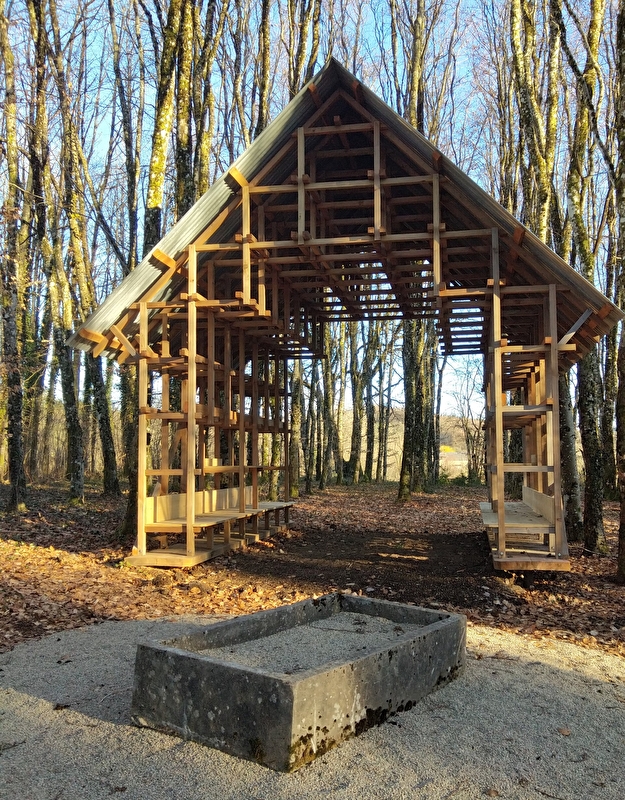 Une aire d'éco-bivouac a été installée en sous bois dans l'enceinte de la Maison du Parc. Deux cabanes y sont à votre disposition pour vous poser le temps d'une nuit, toilettes sèches et foyer viennent compléter cette offre. Un point d'eau potable est situé dans la propriété à 500m de l'aire d'éco-bivouac.