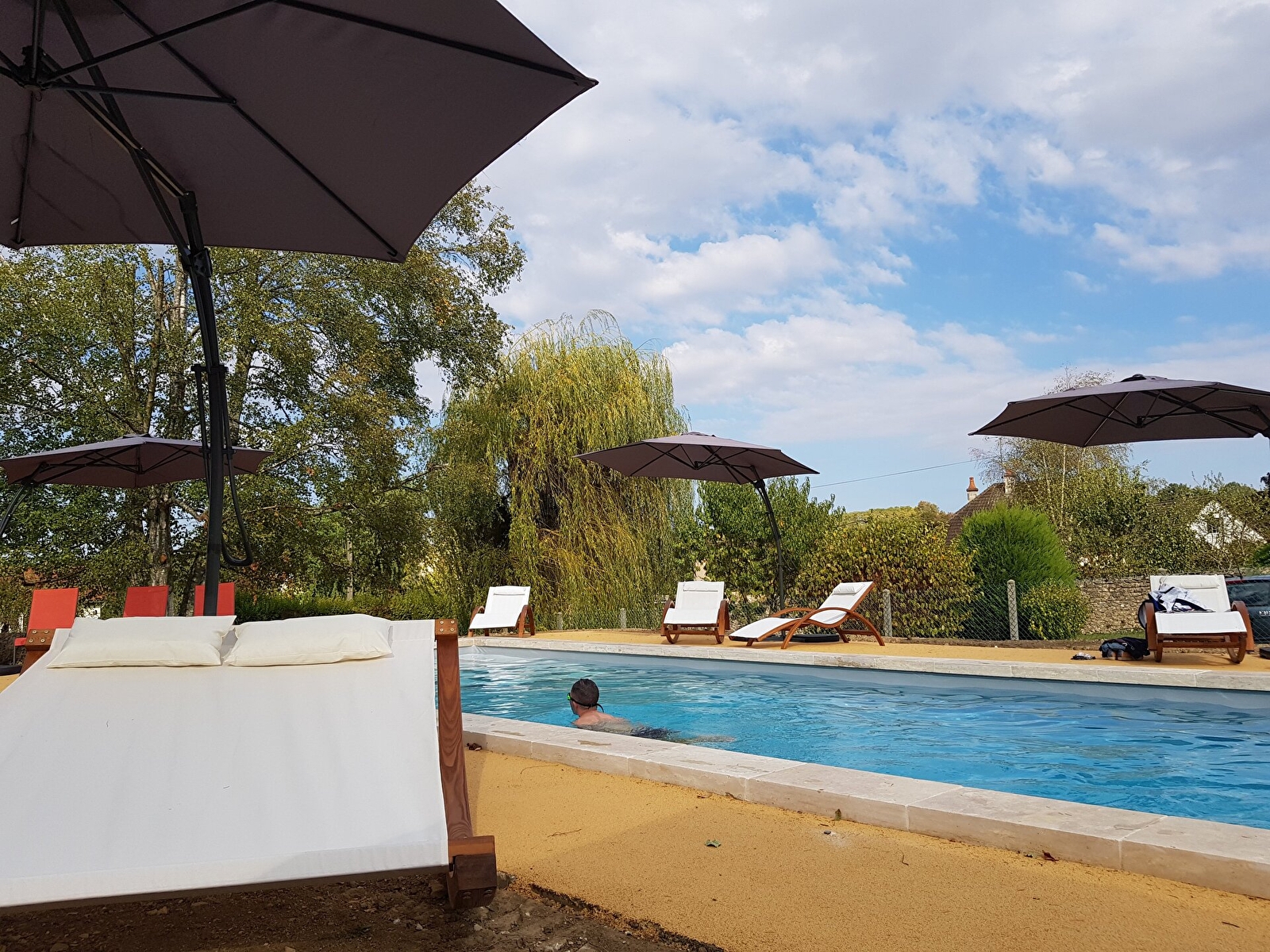 Après une belle et bonne journée de balade dans les vignes du Chablisien ou dans le parc du Morvan avec ses nombreux lacs, vous pourrez vous détendre au bord de la piscine de l’hôtel Au Soleil d’Or, située en retrait, dans un jardin au calme !