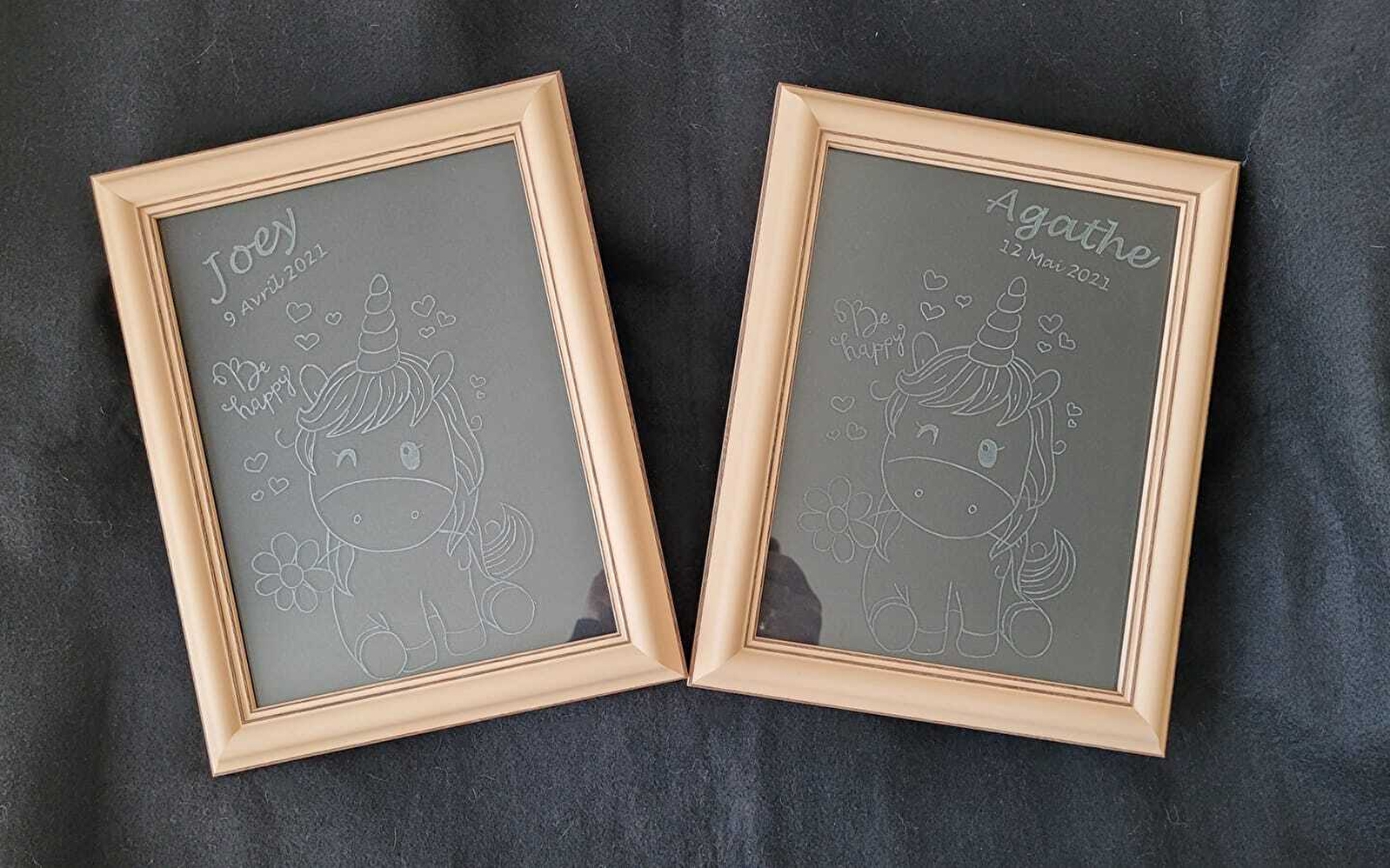 Si vous êtes en manque d’inspiration, proposez un cadeau original, une gravure sur verre (verre, mugs, plaque, etc.) ou un objet en résine. Venez avec vos idées, on en discute.