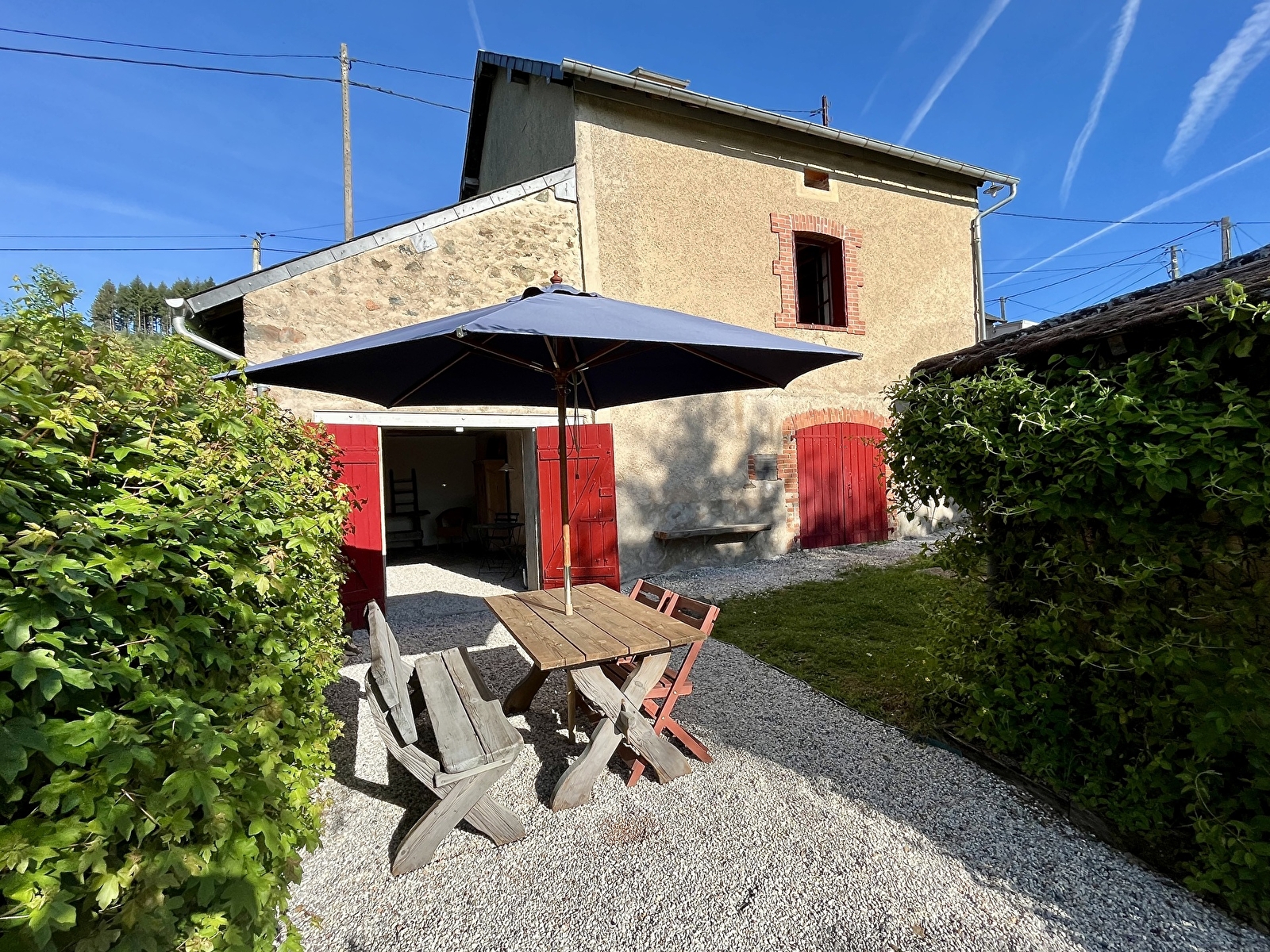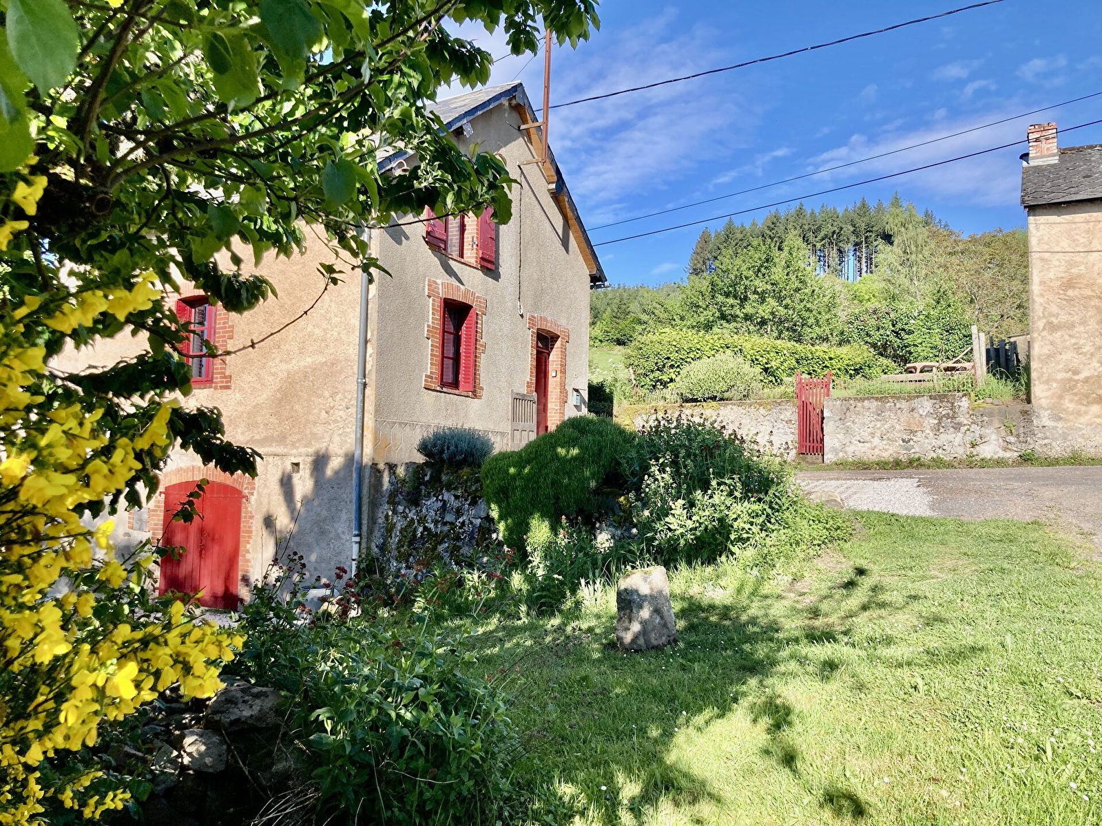 La salle de séjour avec cuisine et le salon offrent une vue sur les paysages de la région. La grande chambre du premier étage et celle du rez-de-chaussée offrent le calme nécessaire pour un séjour à la campagne.