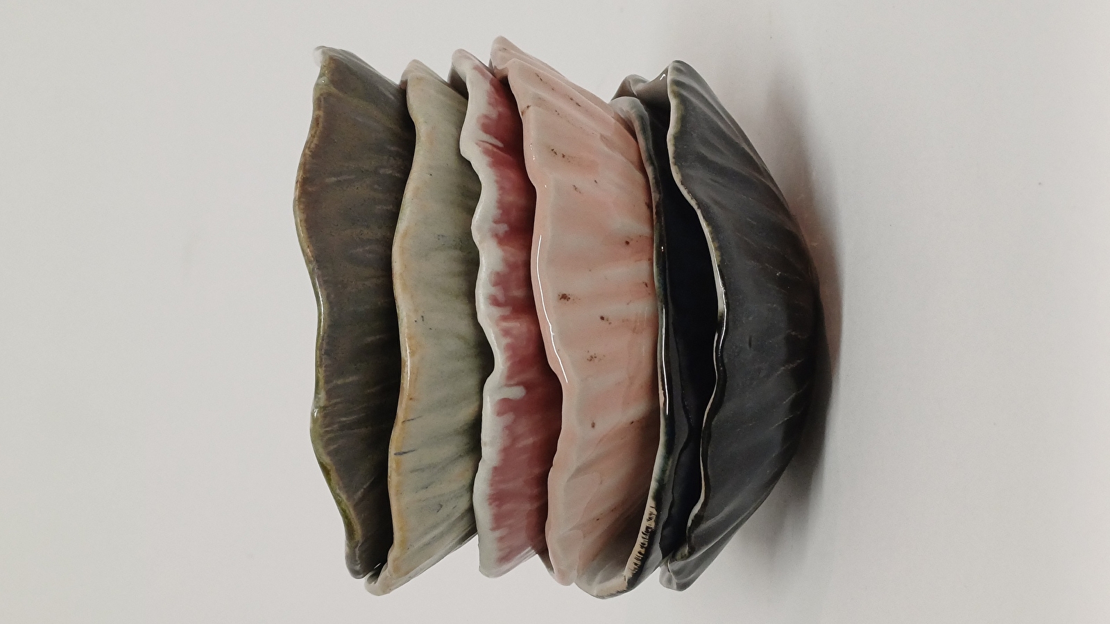 Nous travaillons le grès blanc lisse, ainsi que du grès noir et un grès chamotté à haute température selon diverses techniques telles que le tournage, le travail à la plaque ou le modelage au pincé. Nous réalisons la majorité de nos propres émaux à haute température issus de nos recherches.